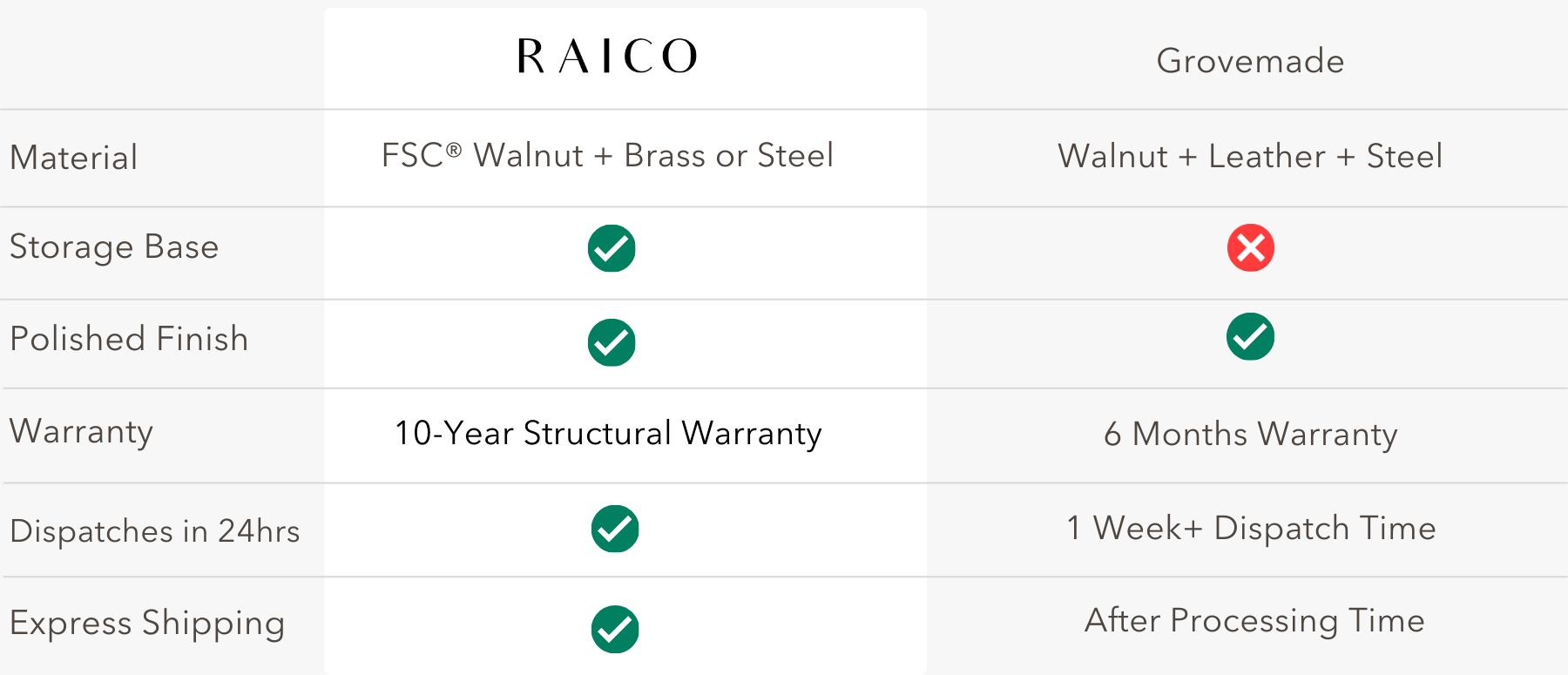 You've probably noticed that we have a carefully curated selection of raw materials. We believe these are the best materials out there for everyday use. Walnut and oak have a naturally beautiful grain and both of them have proven to be strong and durable hardwoods, ensuring that our pieces will last a long time.